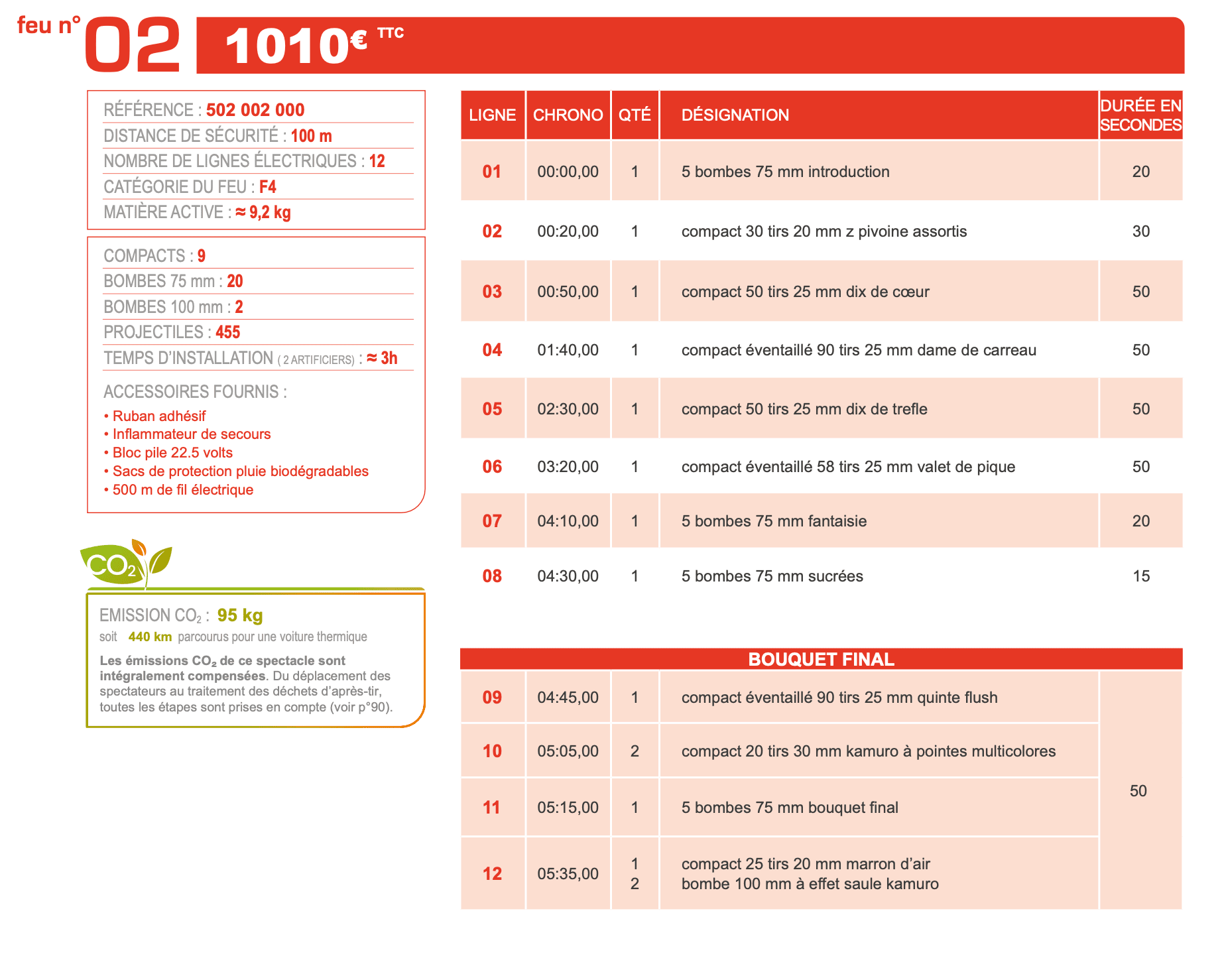 Les produits utilisés pour concevoir le spectacle varient selon les stocks disponibles. Le rapport qualité prix / durée est maintenu lors des changements.