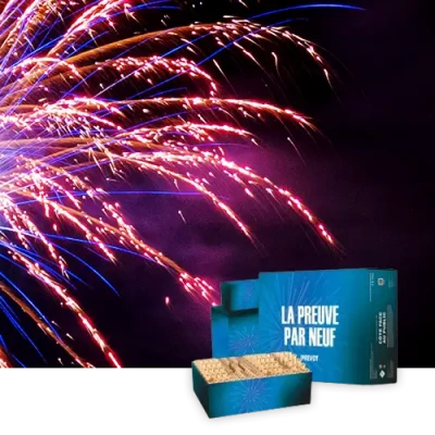 Distance de sécurité : 50 mètres autour des artifices. Consulter la notice complète.
