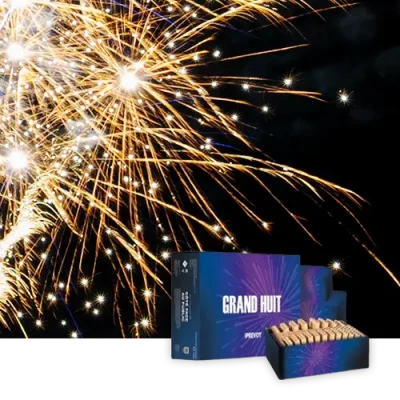 Distance de sécurité : 50 mètres autour des artifices. Consulter la notice complète.