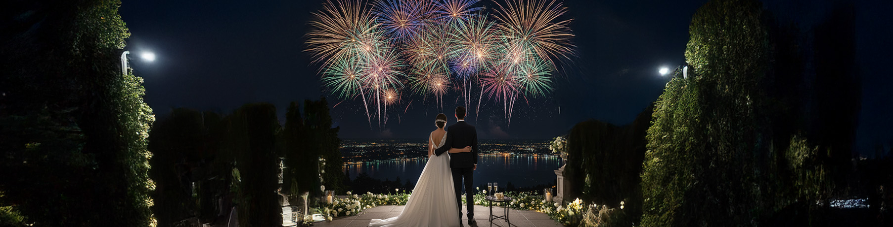 Qu’il soit tiré à la fin du dîner, lors de l’ouverture du bal ou pour clôturer la réception, un feu d’artifice de mariage personnalisé sublime votre événement avec élégance et intensité.